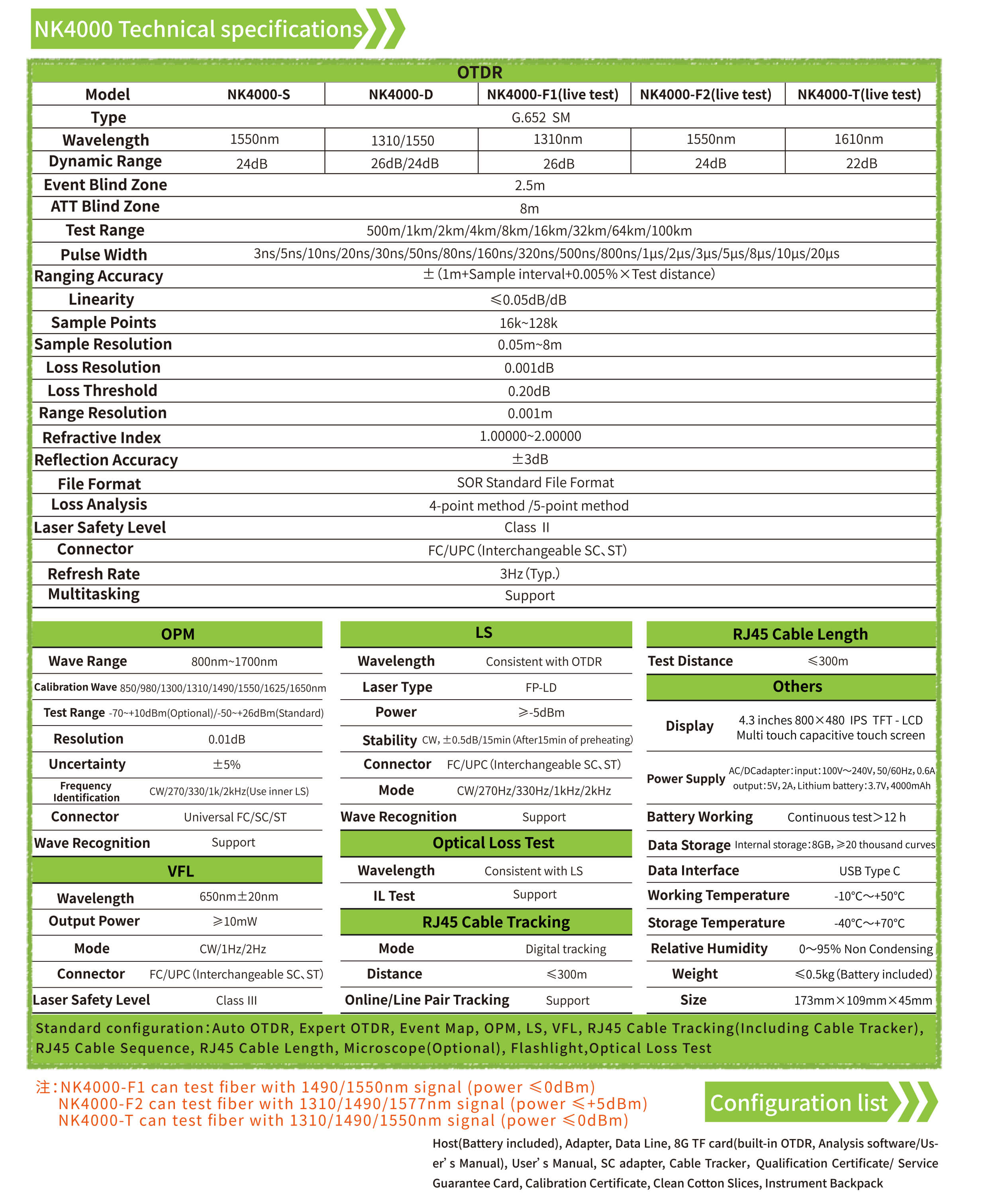 Auto OTDR,expert OTDR,event map,OPM, LS.VFL,RJ45 cable tracking,RJ45 cable sequence,RJ45cable length,microscope, flashlight,optical loss test