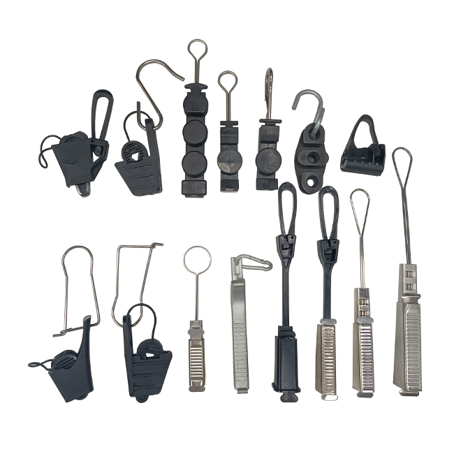 Drop cable clamp, is the aerial fitting for drop or attach fiber optic cables. We can use different cable clamps to tension flat cables, round cables, telephone wire cables to poles, walls, dead end or other places.