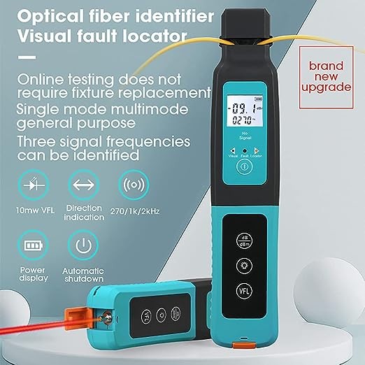 Item Type: Optical Fiber Identifier Model: AUA-40 Material: ABS Battery: 1.5V 2xAA Battery (Battery Not Included) Purpose: It can be used for fiber identification. Type Parameter Wavelength Range 800-1700nm Recognition Type CW, 270Hz±5%, 1kHz±5%, 2kHz±5% Detector Type φ1mm InGaAs 2 pcs Adapter Fiber Type Universal φ0.25 (bare fiber), φ0.9, φ2.0, φ3.0 fiber jumper Direction Left and right direction indication by LED indicator Optical Power Reading Range -40dBm - +10dBm Frequency R